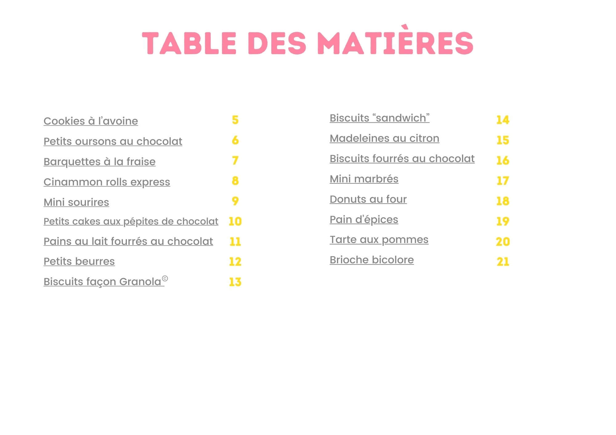 En bonus, tu trouveras une page pratique avec des recommandations de boîtes à goûters, ainsi que les liens vers les moules utilisés dans les recettes.